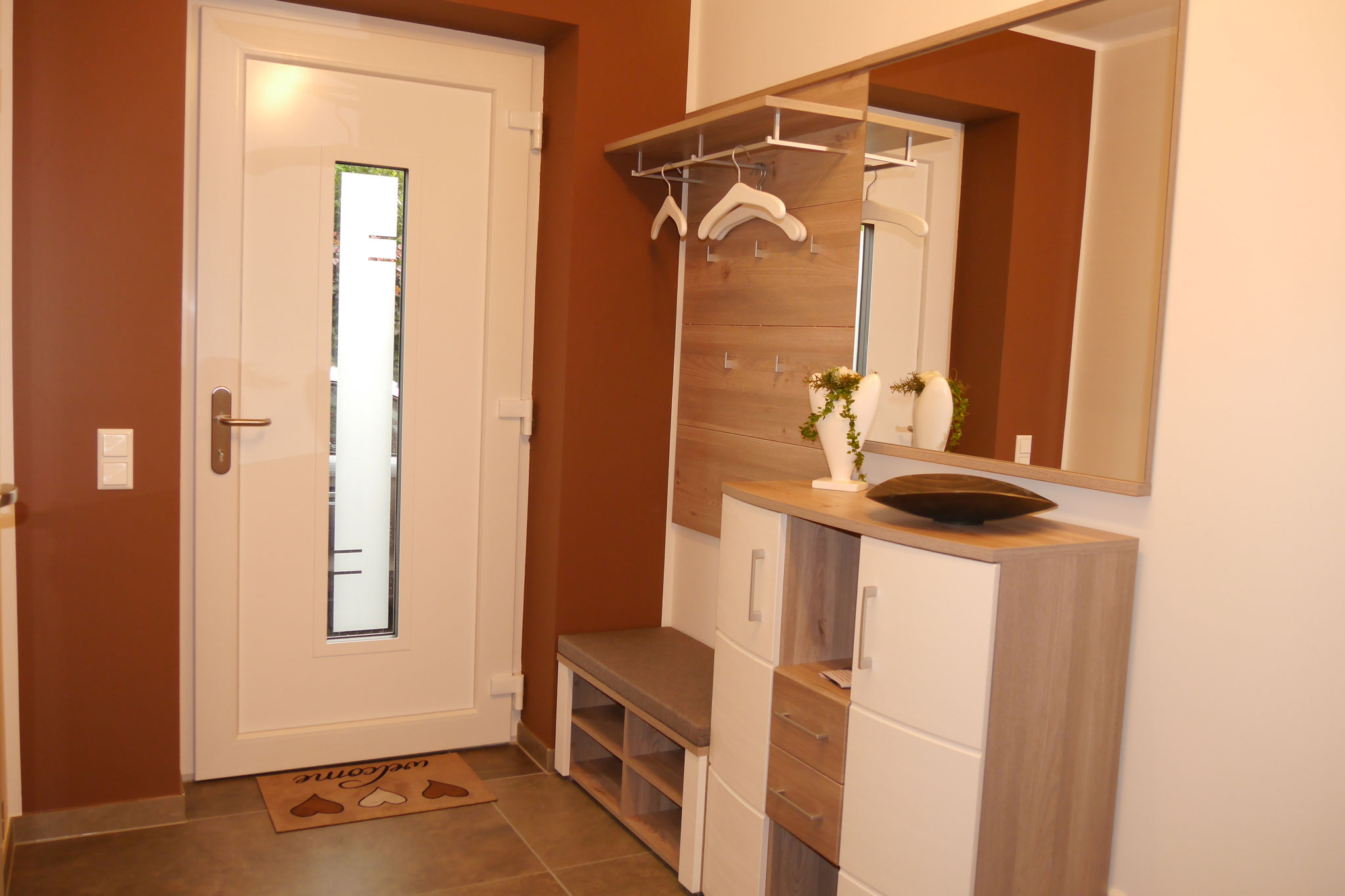 Darüber hinaus sind auf dieser Etage ein Flur mit Garderobenbereich sowie ein kleines Gäste-WC.